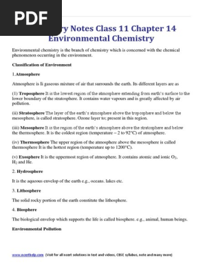 Chemistry Notes Class 11 Chapter 14 Environmental Chemistry Pdf Pdf